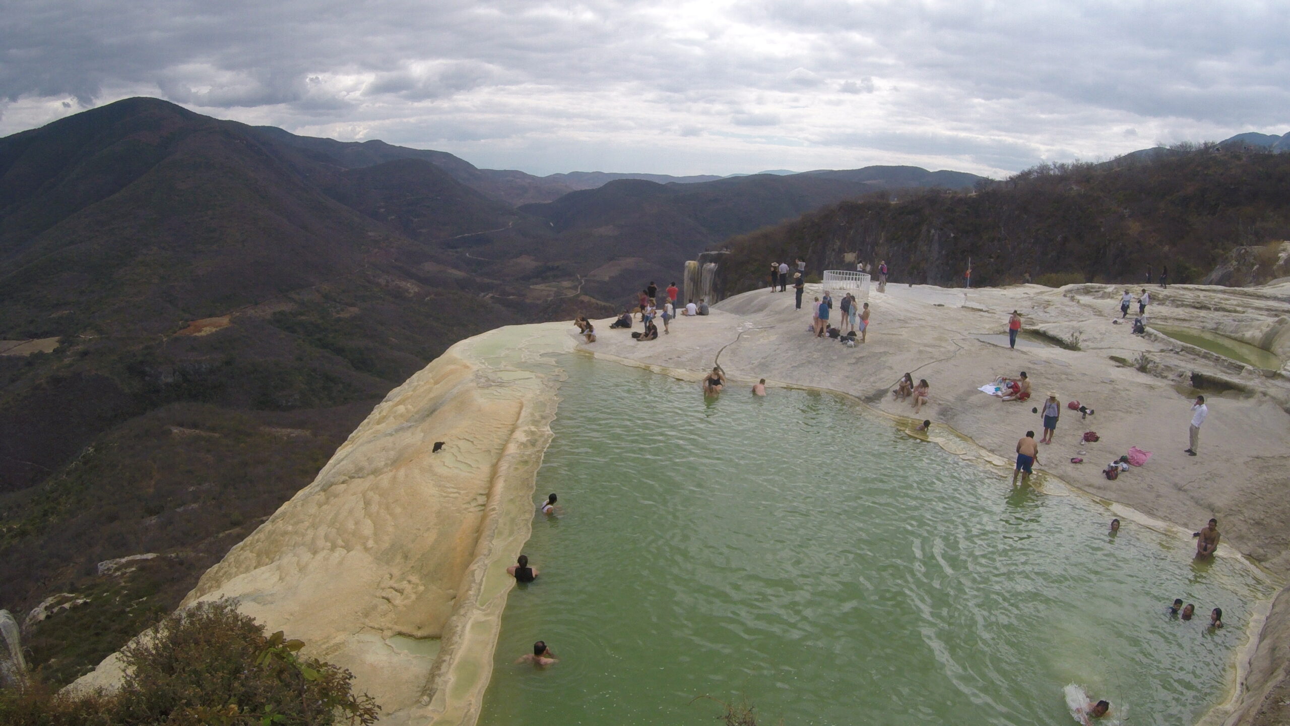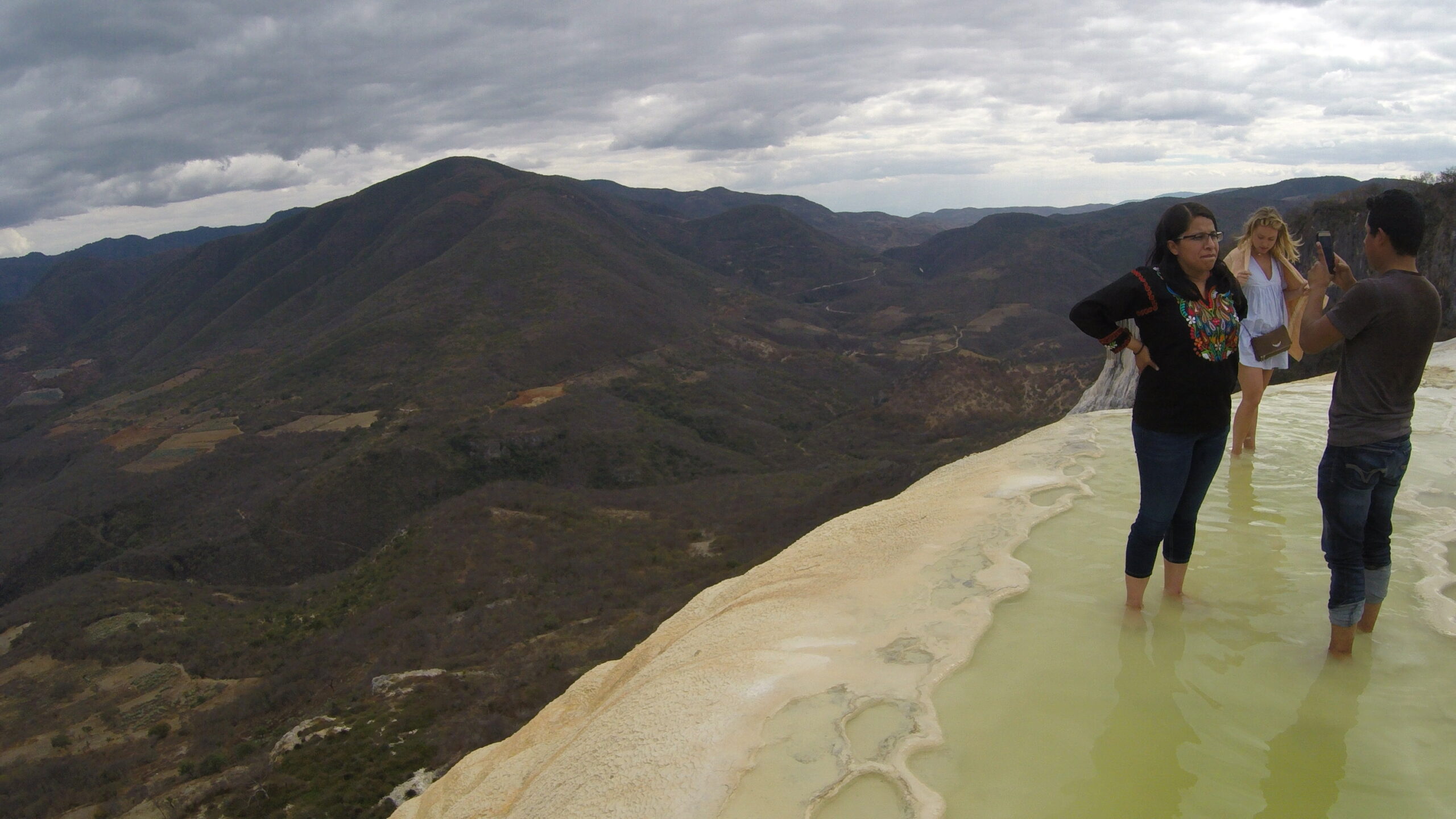 Hay quienes se sientan en las pozas, termales de aguas mineralizadas, otros más se meten como si fuera una alberca natural; sin embargo, otros preferimos estar postrados en sus bordes petrificados haciendo conexión entre el paisaje, la energía, y el ser.