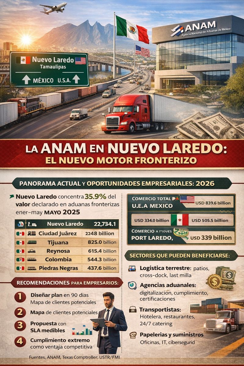 La entrada en operación de la ANAM en Nuevo Laredo puede redefinir el ritmo del comercio México–EE. UU. y abrir oportunidades reales para empresarios fronterizos y del corredor Monterrey–Laredo.